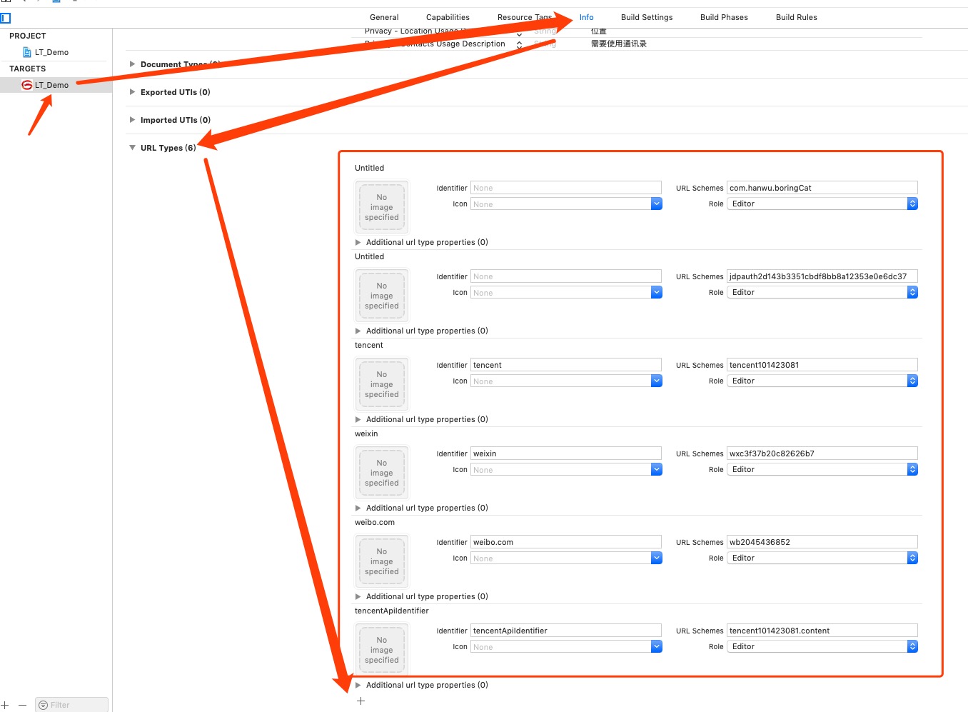 添加URL Schemes 如下图:
