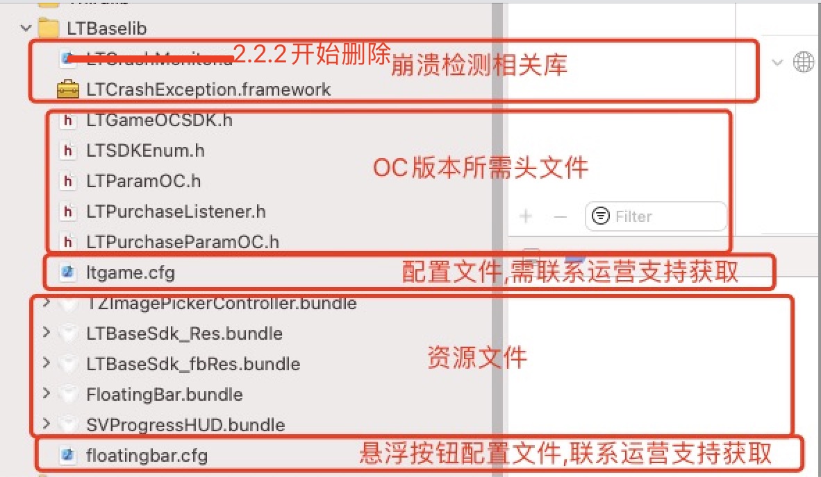 注意:2.2.2版本开始需要删除下图中崩溃相关的LTCrashMonitor.a