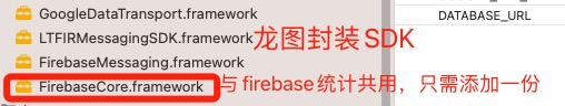 3.接入龙图iOSSDK后,需要配置firebase需要的依赖库。